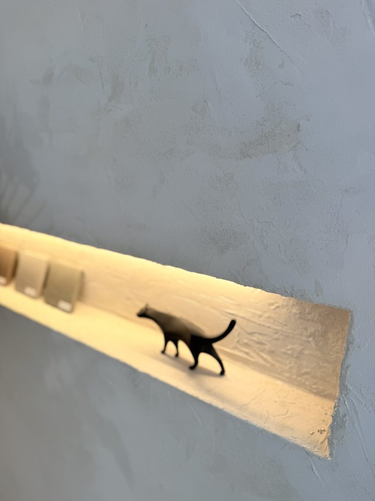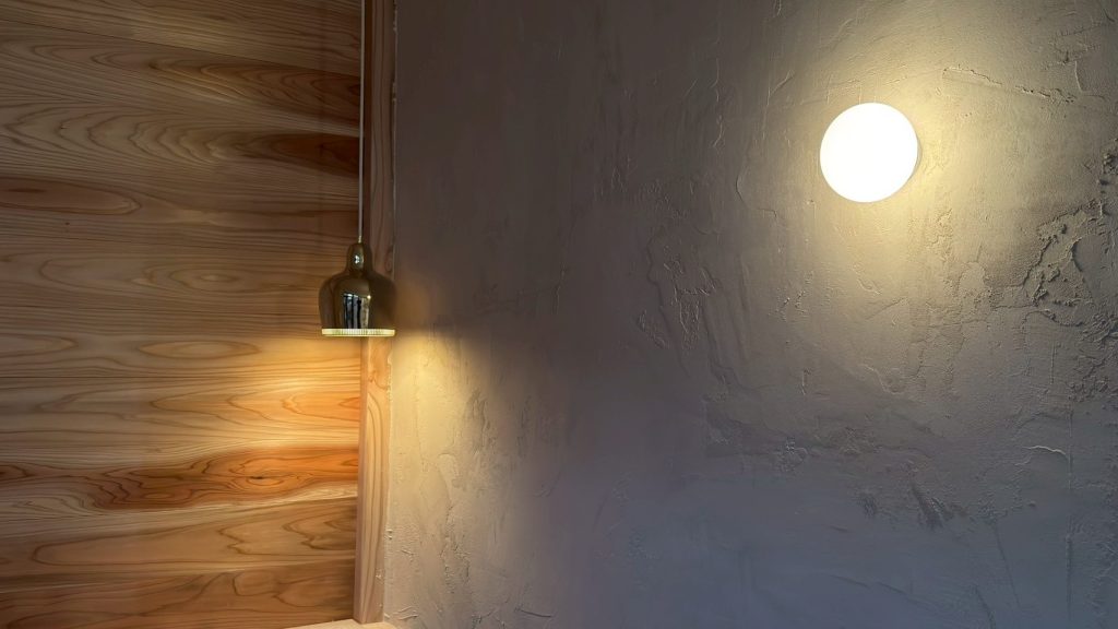 「住み続けるほど好きになる家づくり」を掲げて誕生したみどりのスタジオでは、健康と環境に配慮した100%天然無機の左官材を壁に使用。さらに厳選された照明が、落ち着きのある上質な空間を演出しています。