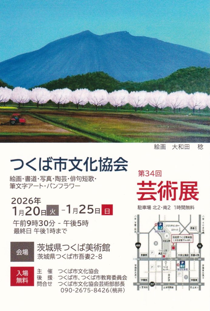 2026年1月20日(火)から1月25日(日)まで、茨城県つくば美術館でつくば市文化協会の第34回芸術展が行われます。