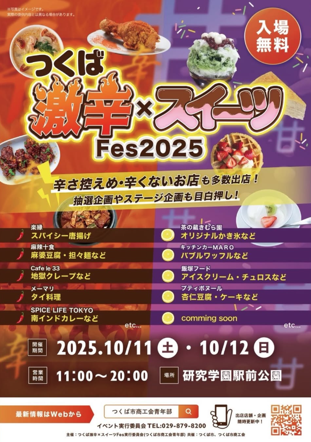 2025年10月11日(土)・10月12日(日)に研究学園駅前公園でつくば激辛×スイーツFes2025が行われます。