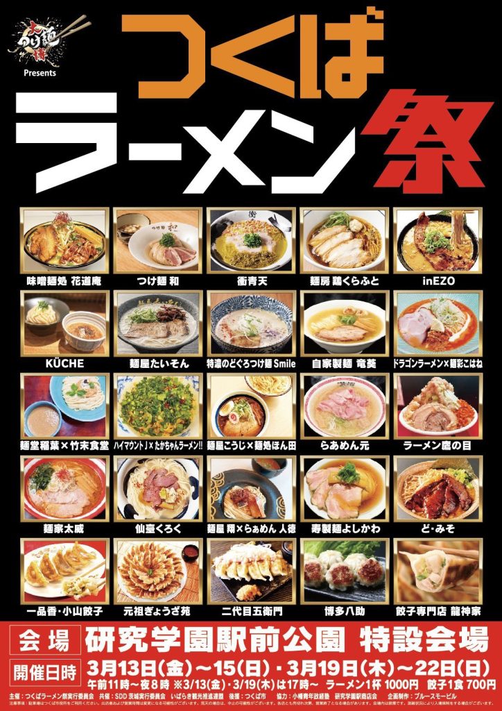 2026年3月13日(金)から、つくば市の研究学園駅前公園にて、ラーメンイベント「つくばラーメン祭」が開催されます。