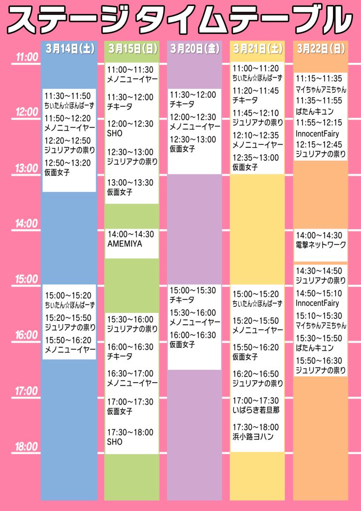 開催時間:11:00~20:00(※3月13日および3月19日は17:00~20:00)