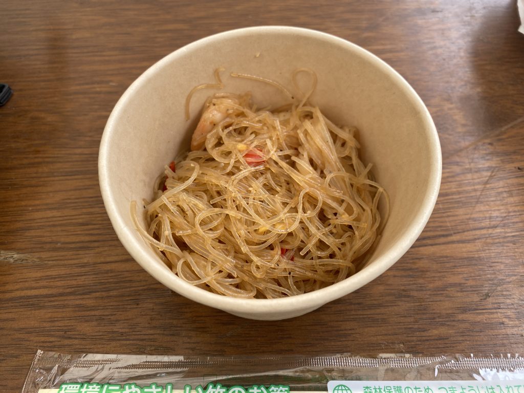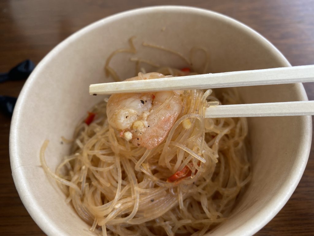 パンダ食堂さんのマーラー春雨虾(500円)は春雨とエビを使用した料理。