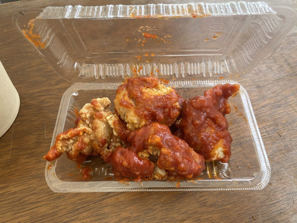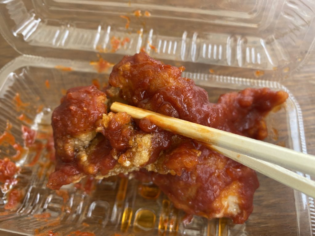 和食ダイニングもののけさんのヤンニョムチキン(600円)を揚げたてでGET!