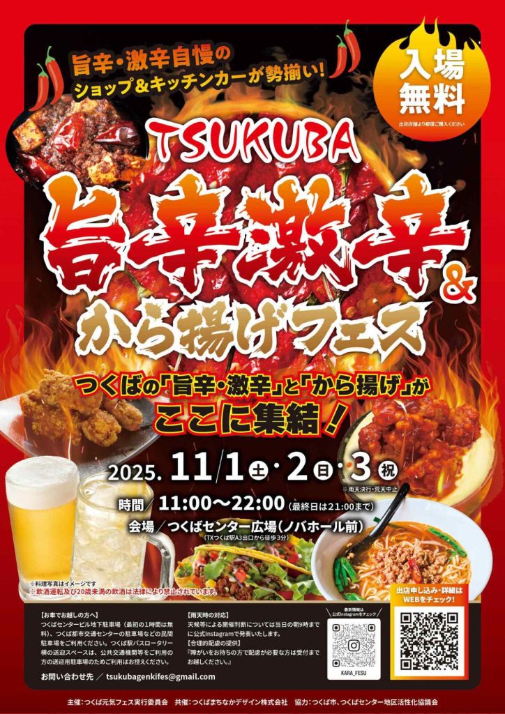 2025年11月1日(土)、2日(日)、3日(月・祝)に、つくばセンター広場でTSUKUBA旨辛激辛から揚げフェスが行われます。