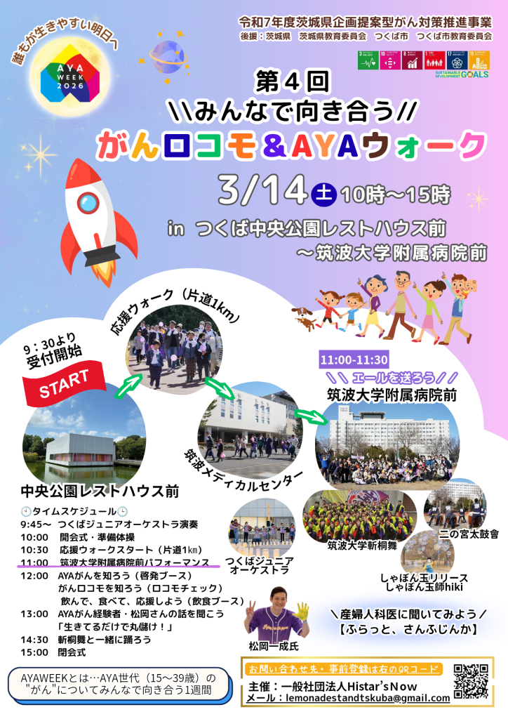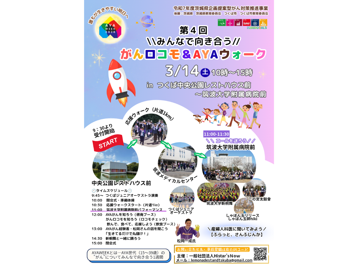 2026年3月14日(土)、第4回みんなで向き合うがんロコモ&AYAウォークが開催されます。