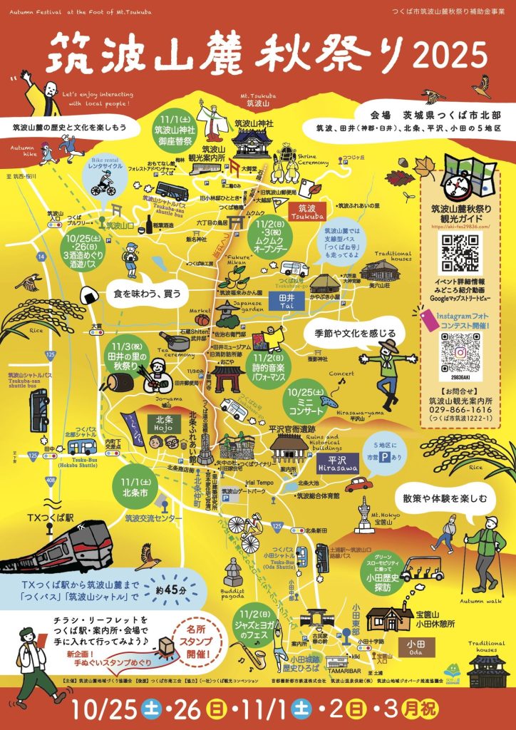 2025年10月25日(土)、26日(日)、11月1日(土)、2日(日)、3日(月・祝)に、筑波山麓地域筑波山麓秋祭り2025が行われます!