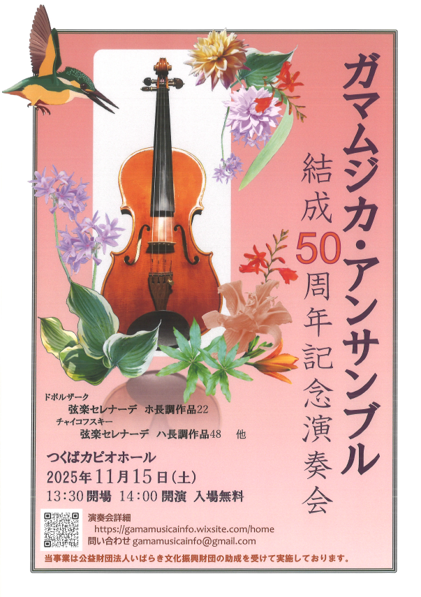 2025年11月15日(土)に、つくばカピオホールでガマムジカ・アンサンブルの結成50周年記念演奏会が行われます。