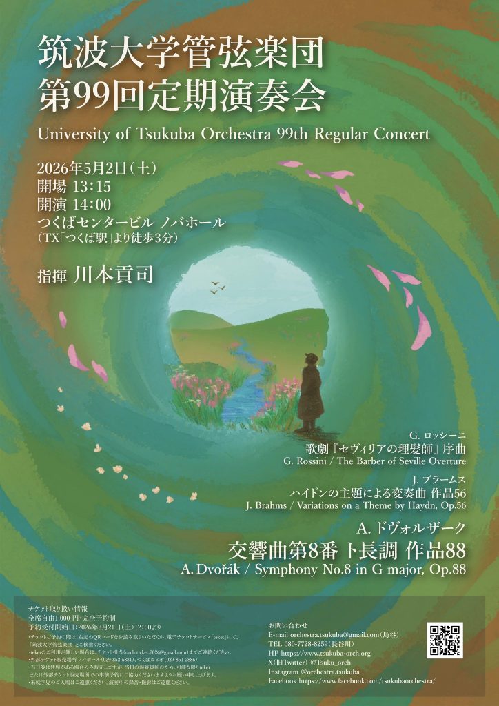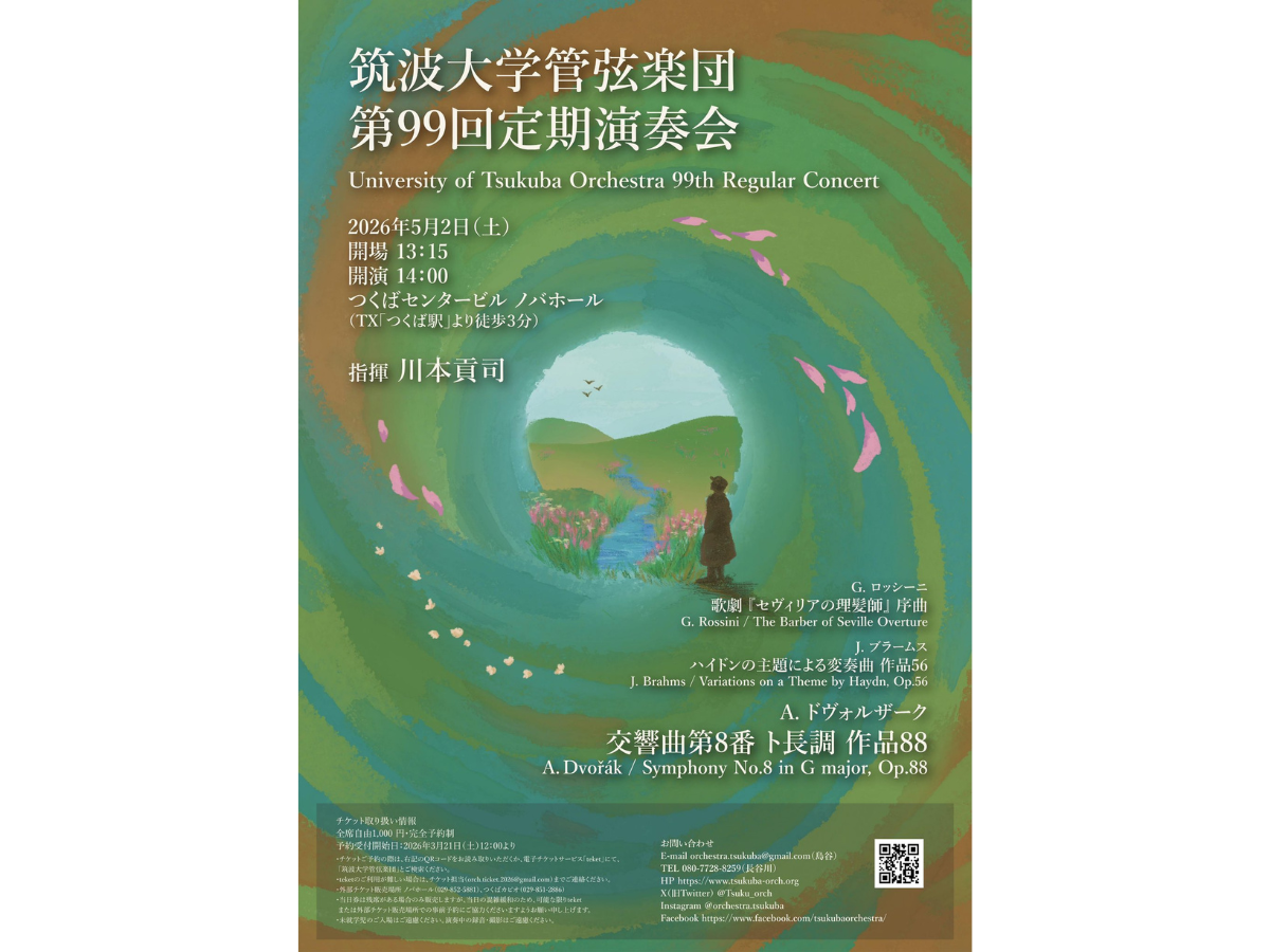 2026年5月2日(土)、ノバホールで筑波大学管弦楽団の第99回定期演奏会が開催されます。