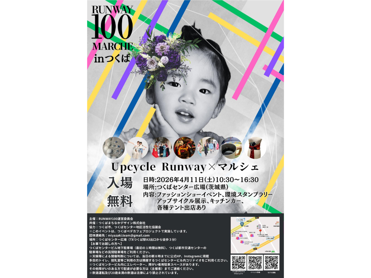 2026年4月11日(土)、つくばセンター広場で「RUNWAY100×マルシェ㏌つくば」が開催されます。