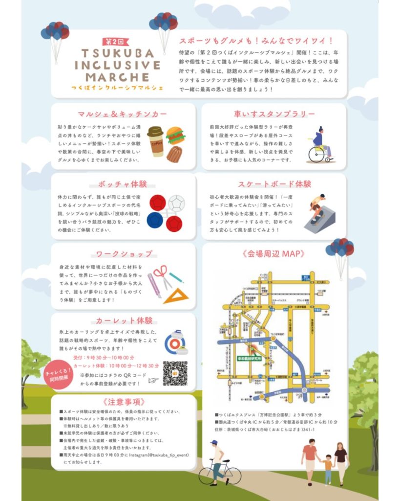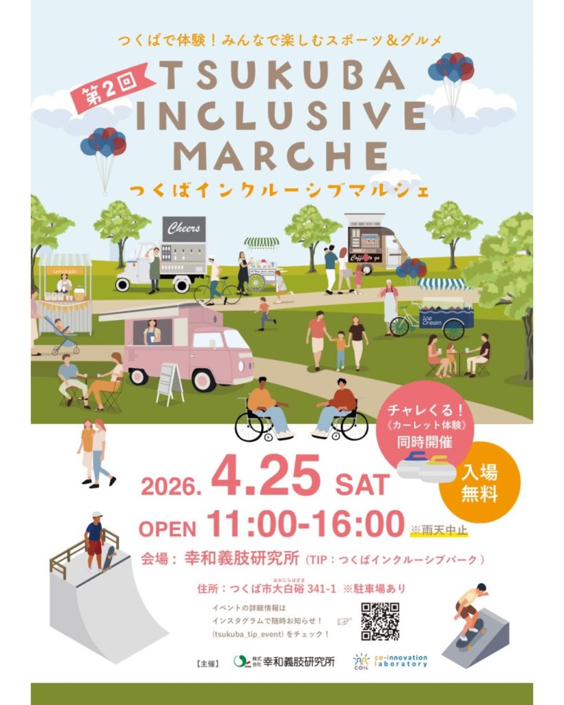 2026年4月25日(土)、つくば市大白硲の幸和義肢研究所(TIP:つくばインクルーシブパーク)で、第2回つくばインクルーシブマルシェが行われます。