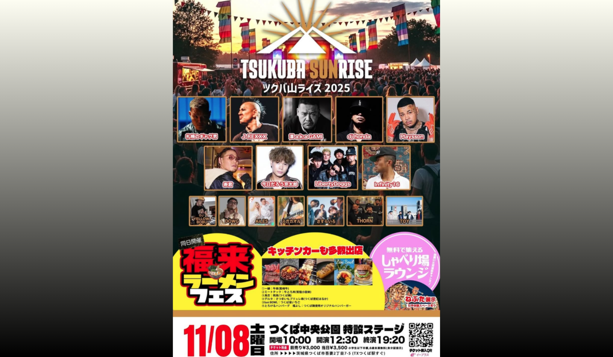 2025年11月8日(土)、つくば中央公園で音楽フェス、「TSUKUBA SUN RISE 2025(ツクバ山ライズ2025)」が行われます。