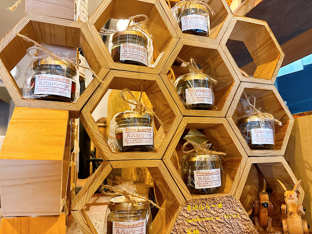 レジ前では「特製具沢山ら〜油」や「花椒パウダー200ℊ」が販売されています。