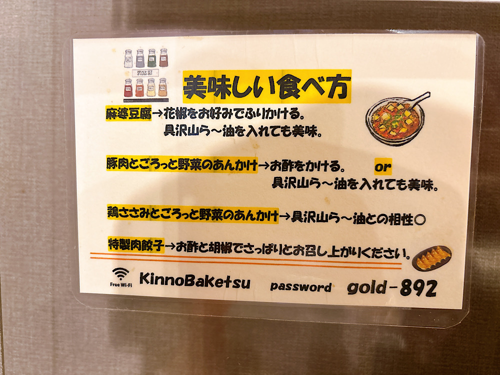 こちらを参考に、卓上にある具沢山ら〜油や花椒(ホアジャオ)パウダーを使えば、さらにおいしく食べられそうですね!