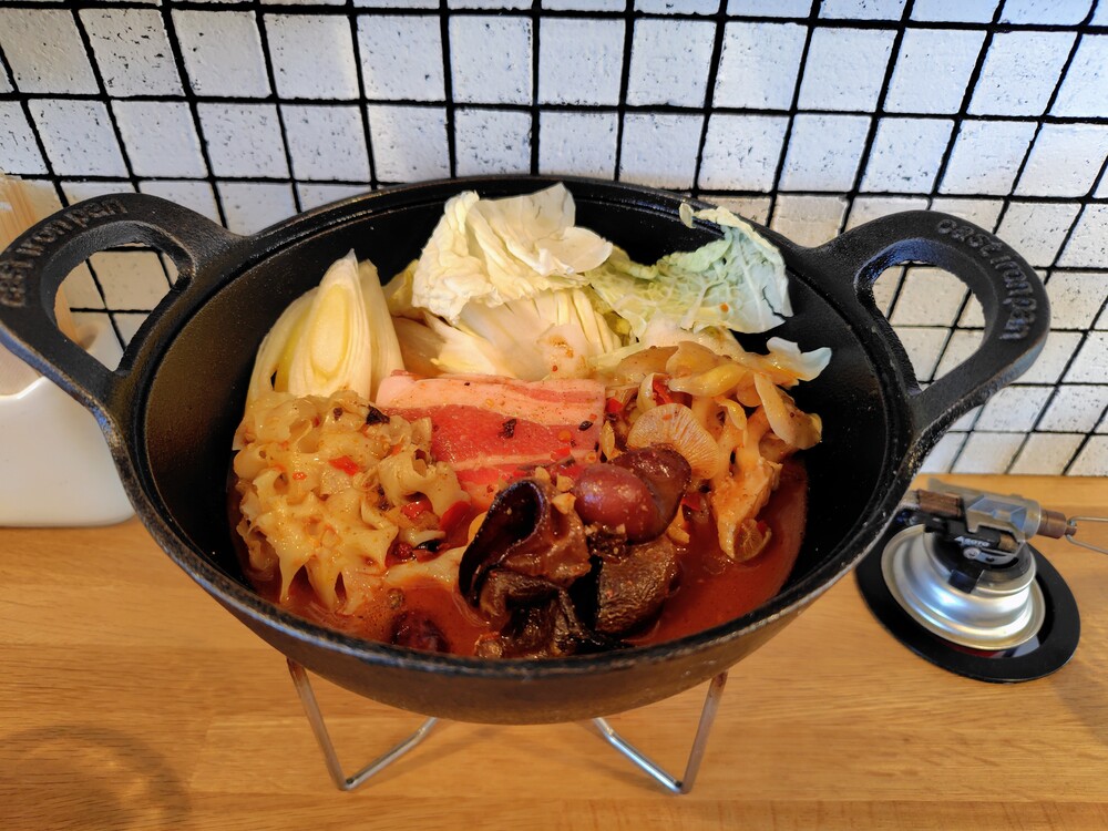 しばらく食べ進めていくと辛さにだいぶ慣れてきました。トロトロのネギ、豚バラ、キノコの具材が火鍋のスープに合わさることで、辛さとうまみを交互に楽しめてとてもおいしかったです。