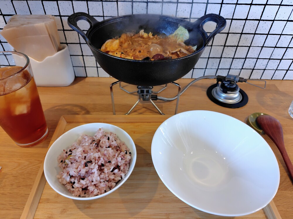 具材をよそって、火鍋定食ができあがりました!