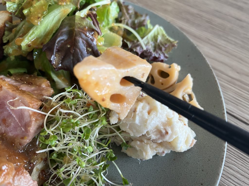 ポテトサラダはお酒に合いそうなお味で、昼間からワインが欲しくなりました。