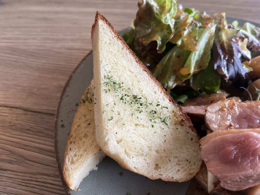 フォカッチャはトーストしてあってサックリ。鴨のソースを時々すくいながら、食べ進めます!