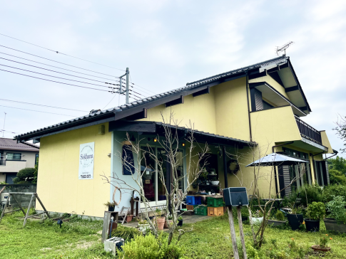 ナビを頼りに車を走らせると、小さな看板とともに、かわいらしいお店があらわれました。周囲は昔ながらの家と新しい住宅が調和する静かな場所。そこに週末の早朝から人が集まるお店があるなんて、ちょっと意外かもしれません。