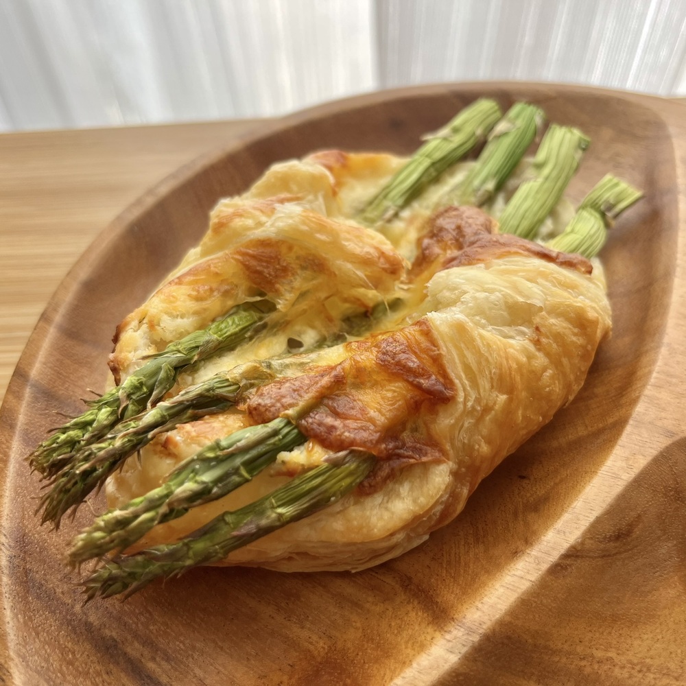 アスパラガスの食感と、クリームチーズとモッツァレラが溶け合った濃厚なフィリング、パリパリでバターの香りがたまらないパイ生地が合わさって、リピートしたくなるおいしさでした!