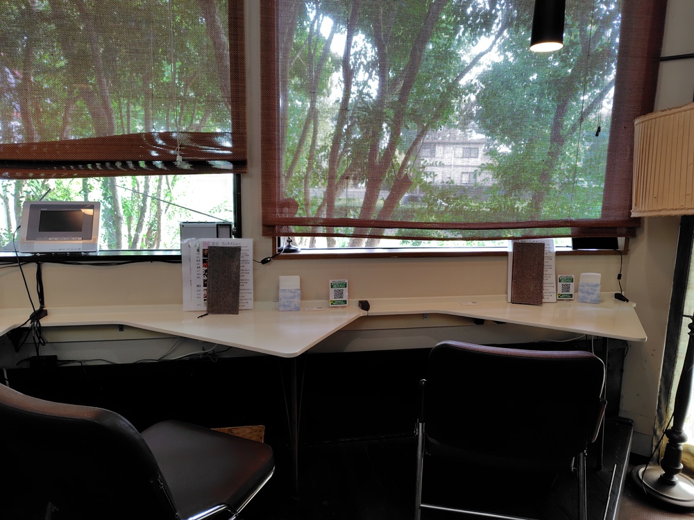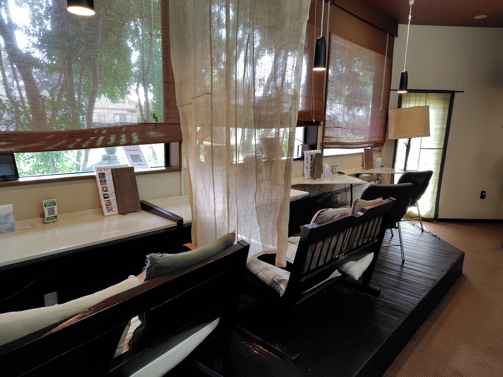 お店の周りが木に囲まれているためでしょうか、店内は明るさを抑えた雰囲気でとても居心地が良いです。夏は涼しそうでいいですね。