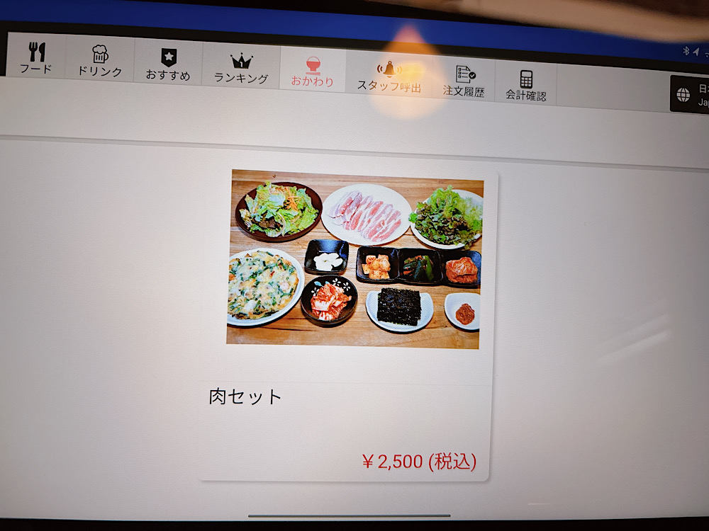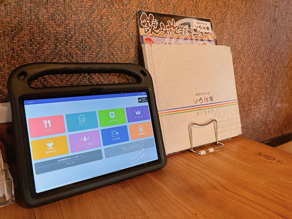 注文はタブレットからで、メニュー表も卓に用意されています。