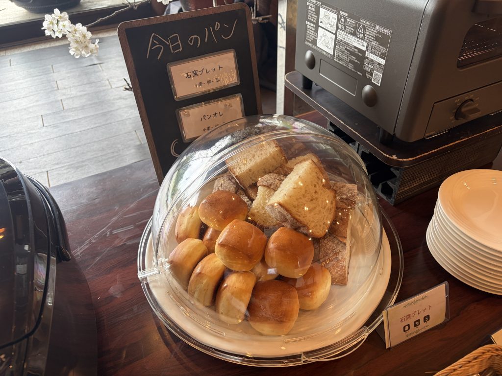 パンは石窯ブレッドとパンオレの2種類。トースターもあるので、軽く焼いて楽しむこともできます。トーストした石窯ブレッドは外はカリッと、中はもっちり。パンオレはふんわり柔らかく、どなたにも食べやすい印象です。