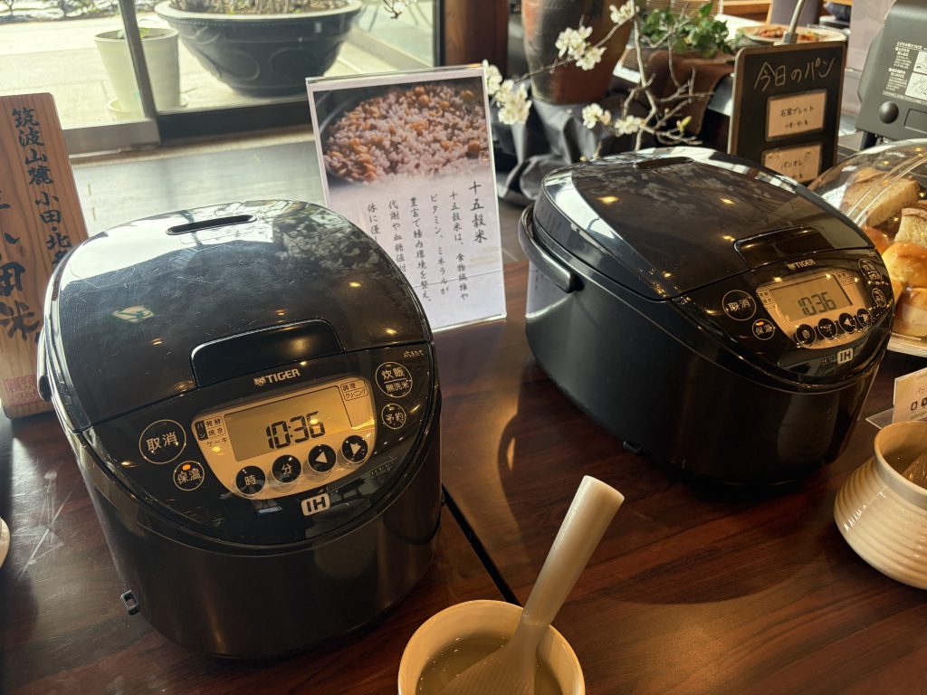 ご飯は白飯と十五穀米の2種類で、地元の常陸小田米を使用しているとのこと。つくばのお米は美味しいですからね!