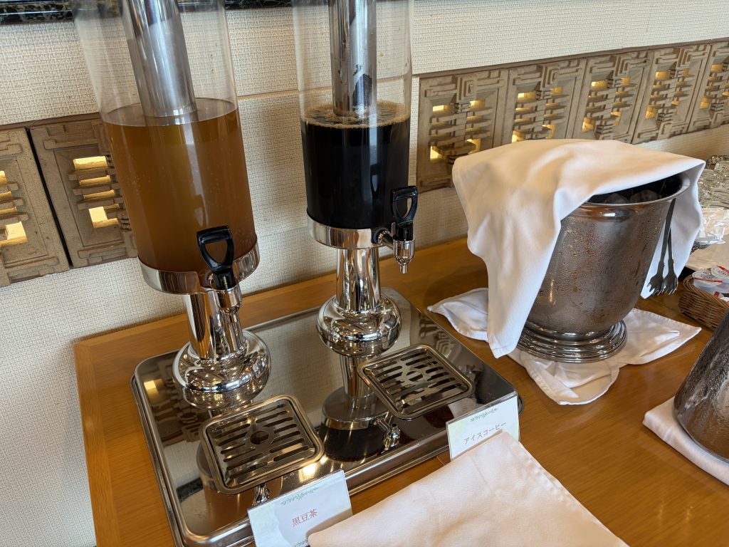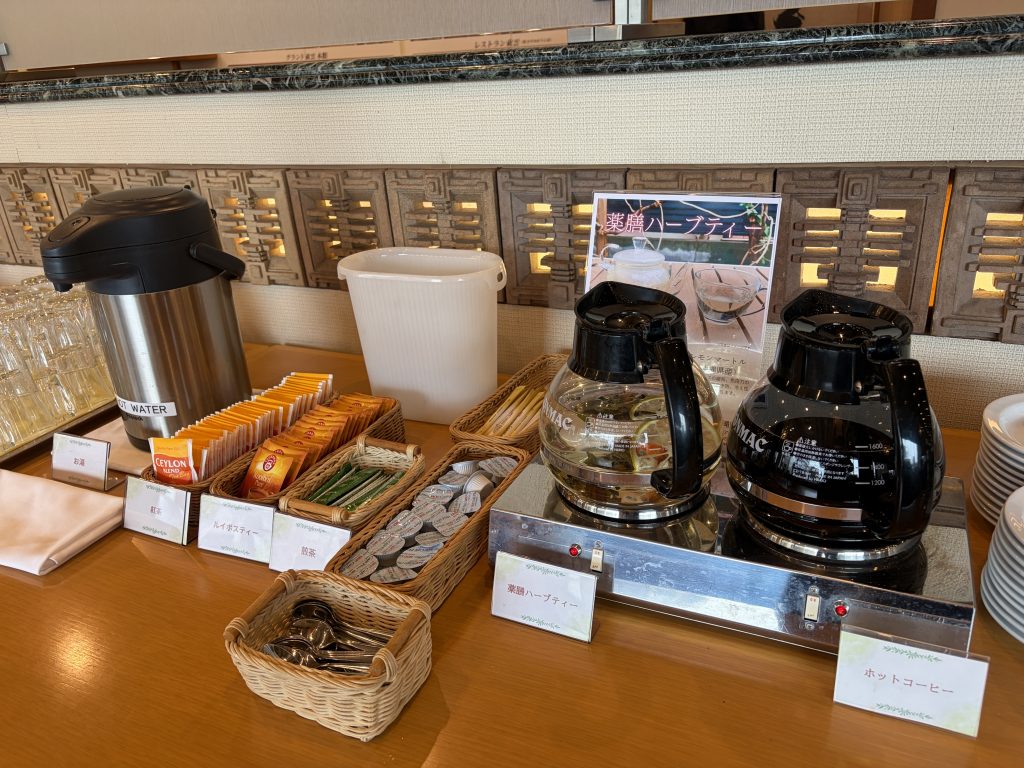 ドリンクバーには、ホットコーヒー、アイスコーヒー、紅茶、ルイボスティー、煎茶、黒豆茶のほか、沖縄産マイヤーレモンなどを使用した薬膳ハーブティーもあり、食事に合わせて好みの一杯を選べます。