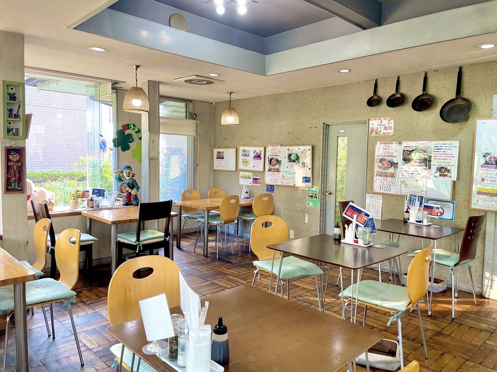 店内は大きな窓から日差しが差し込む明るい空間で、どこか懐かしいような、温もりのある雰囲気。たくさんのテーブル席があり、ひとりでもグループでも入りやすい印象です。