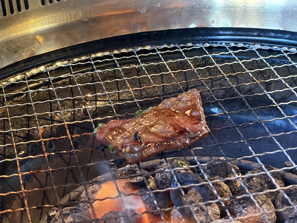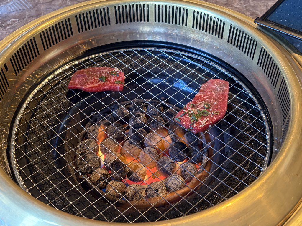 目の前の焼き網で、自分好みの焼き加減に焼き上げるスタイル。