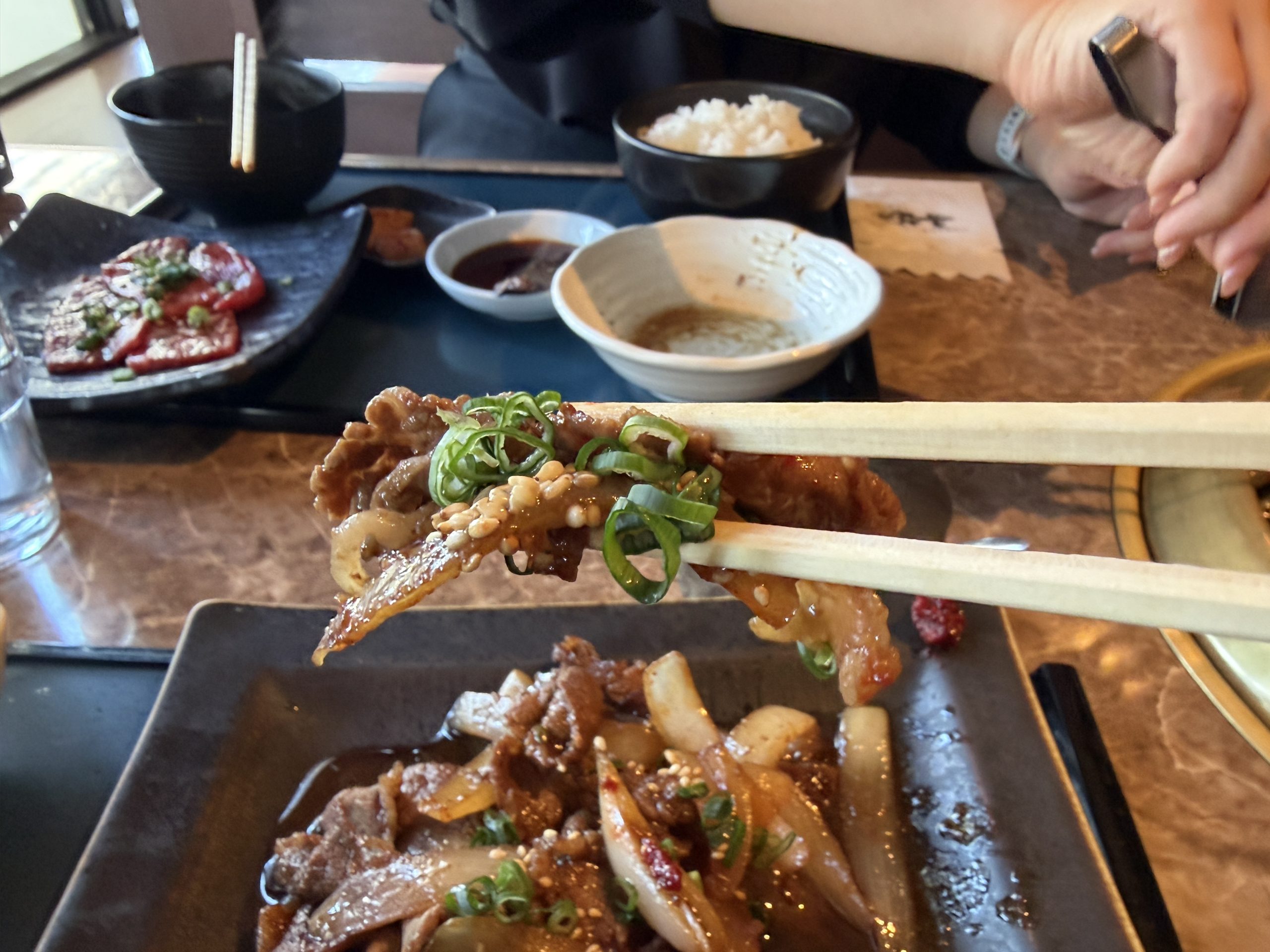 甘辛いタレがカルビと玉ねぎにしっかり絡み、ご飯がどんどん進みます。テーブルに置かれたコチュジャンで辛みをプラスしたり、カクテキと一緒に食べたりと、最後まで飽きずに楽しめました。腕白な男子から、私のような大人女子まで、幅広く愛される味です。