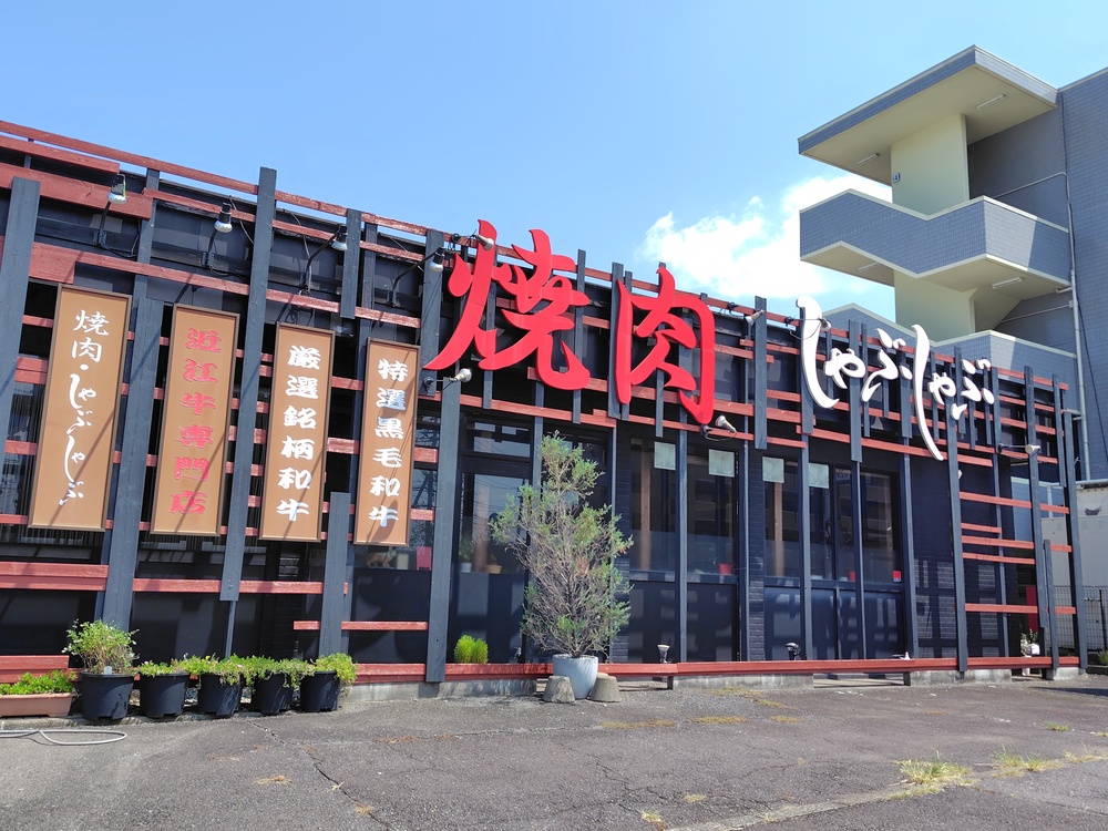 「焼肉」「しゃぶしゃぶ」と大きな看板があり、お肉が食べられるお店なんだと一目でわかります。