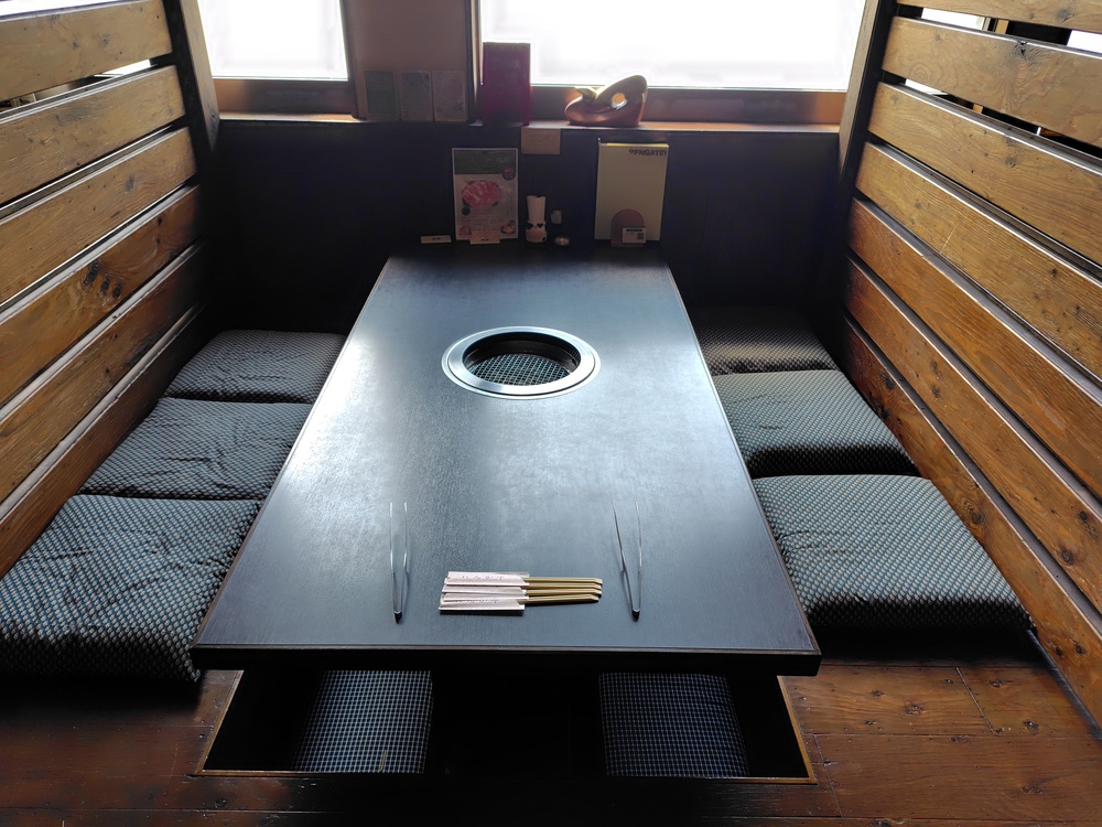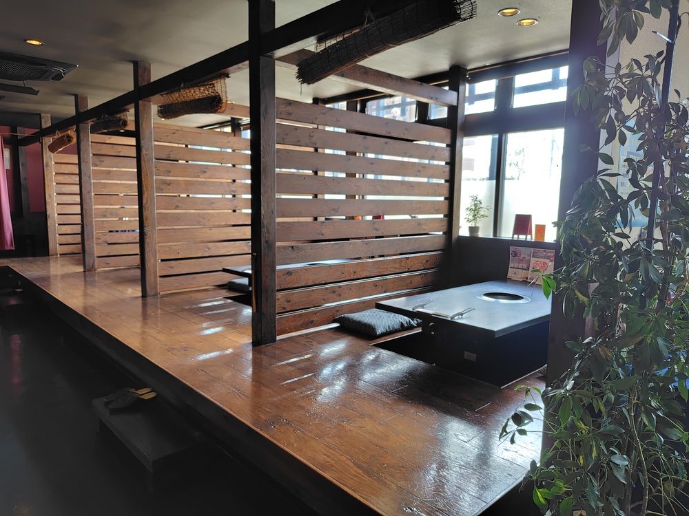 こちらは掘りごたつの半個室。6名が座れる広々した席です。