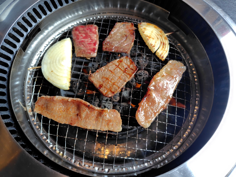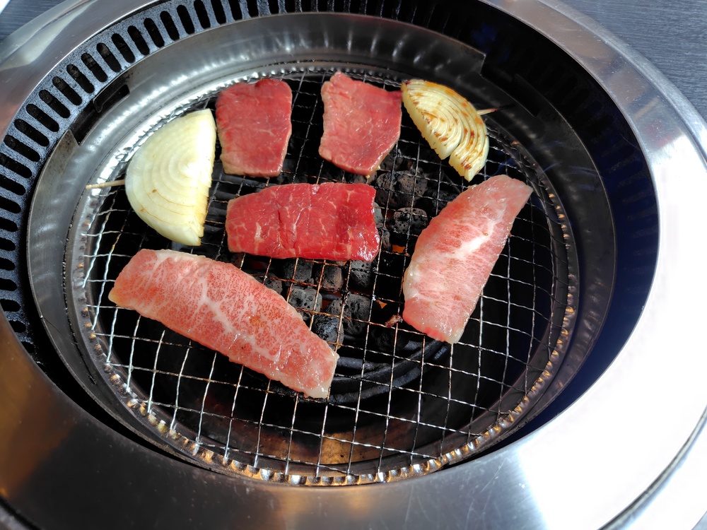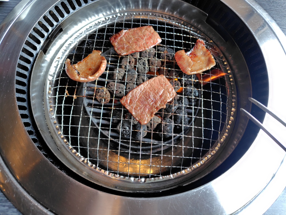 では、「ミックス定食(カルビとロース)」をアドバイスの通りに少しずつ焼いて行きましょう。