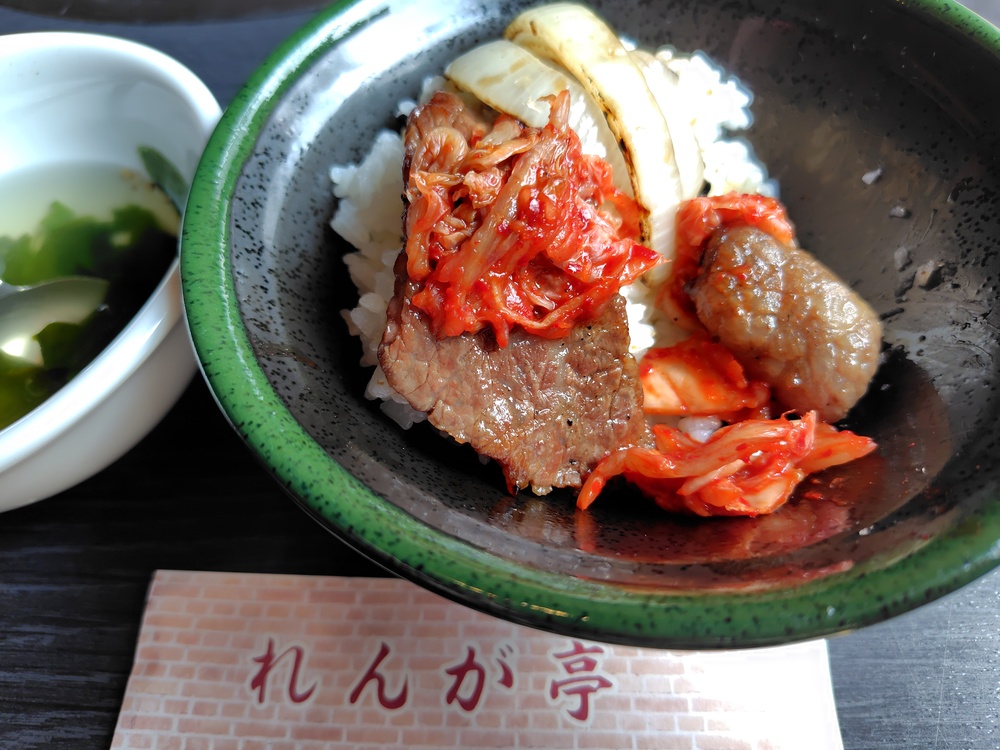 最後のほうは、焼肉丼のようにお肉とキムチ、玉ねぎを盛りつけて一緒に食べました。