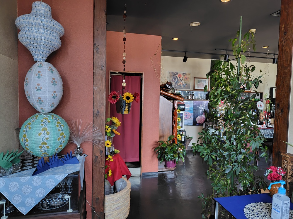 扉の奥はレトロな雰囲気。飾っている絵やお皿、置いてある椅子などの家具もとても趣があります。とくに私のような昭和生まれの世代にはとても懐かしく、心地よく感じられる空間になってしました。