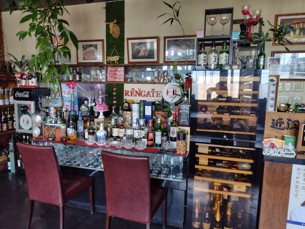 お店ではお酒も楽しめるようで、ワインセラーやたくさんのお酒、お酒を飲むグラスが置いてありました。こんな趣のある空間でお肉を食べながらお酒を飲むのも楽しそうですね。