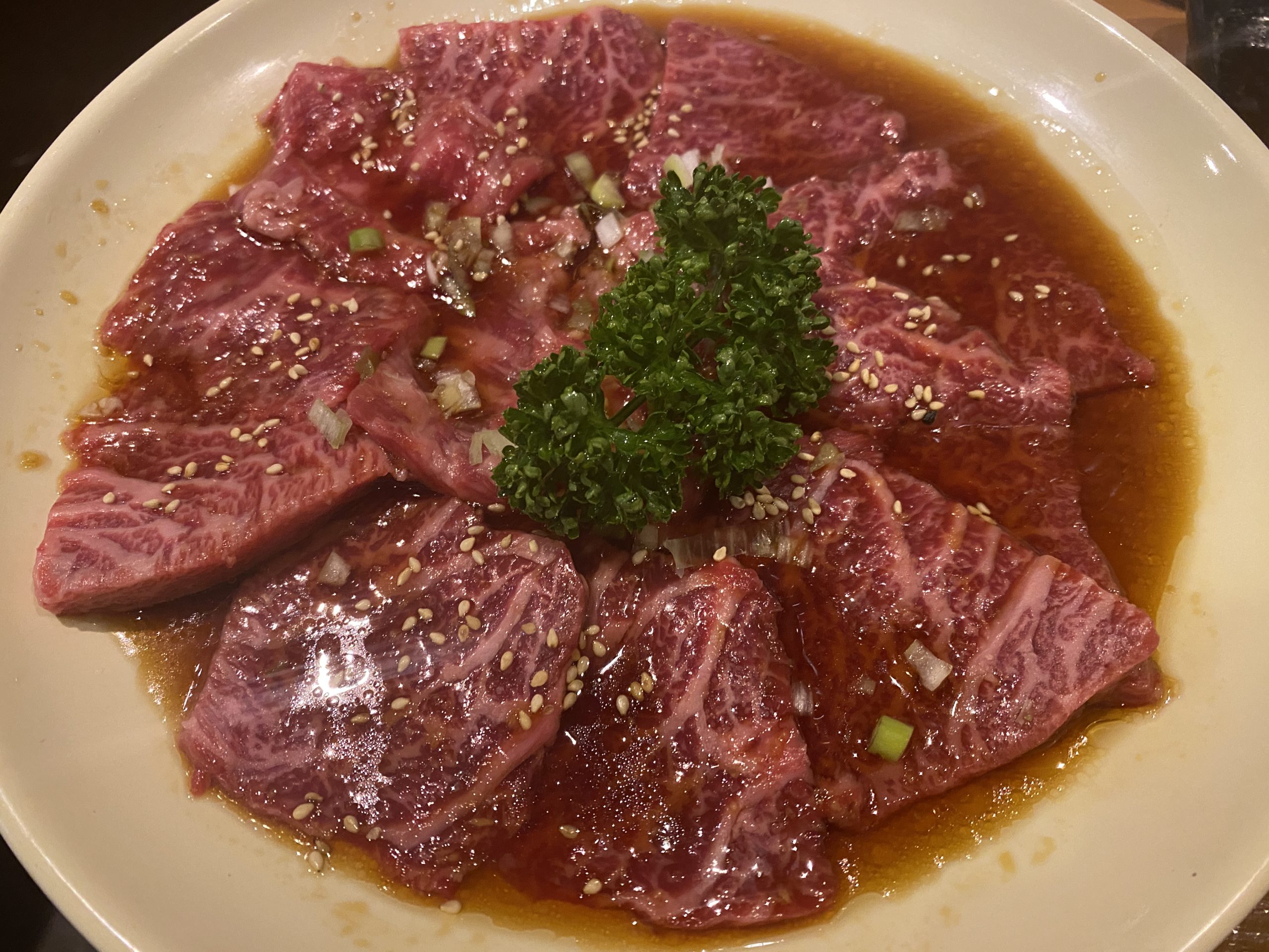 楽園ではこの道25年の店主が厳選した、こだわりの国産黒毛和牛を使用しているとのことで、見るからにおいしそうです♪