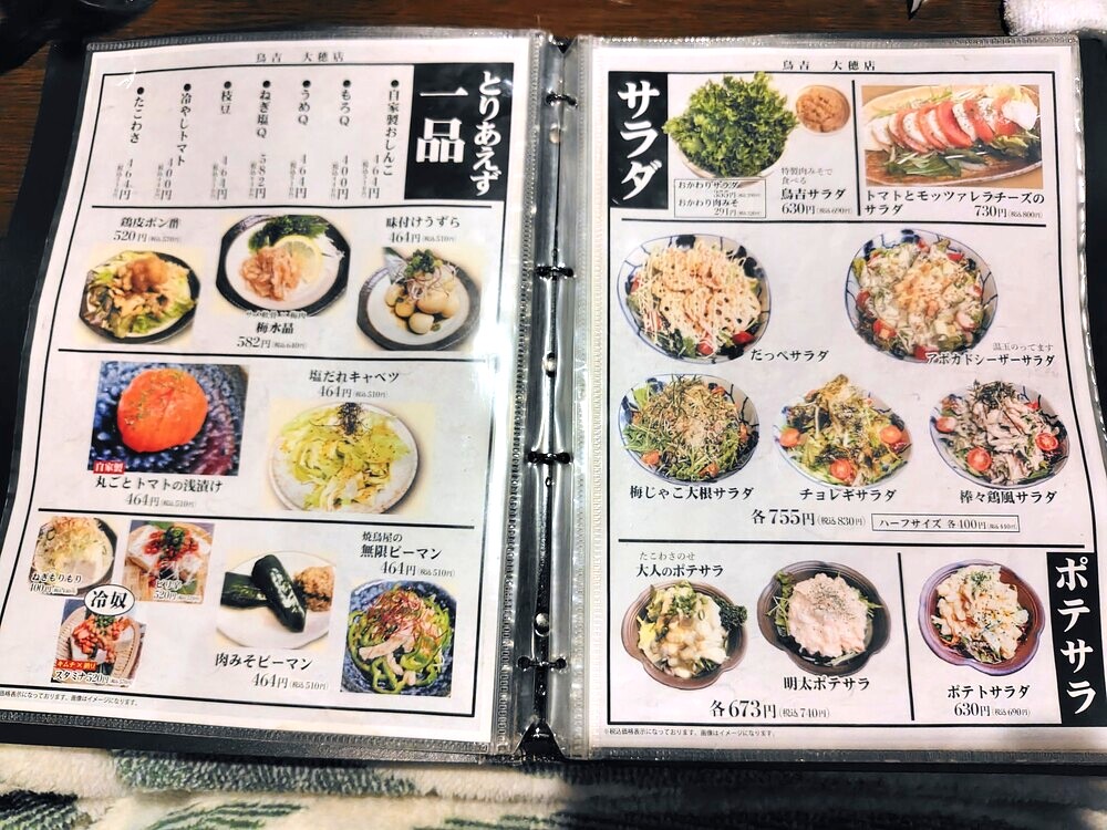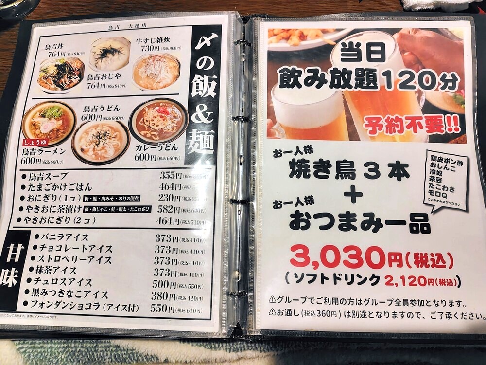 鳥吉つくば大穂店は、焼き鳥以外にも食事として楽しめるメニューが豊富です。