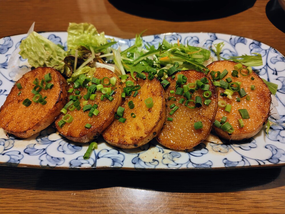 長芋は5㎜ほどの厚みがあるので、食べ応え抜群です。シャキシャキとした食感と、さっぱりしていながらも濃厚なタレが長芋のうまみを倍増させています。